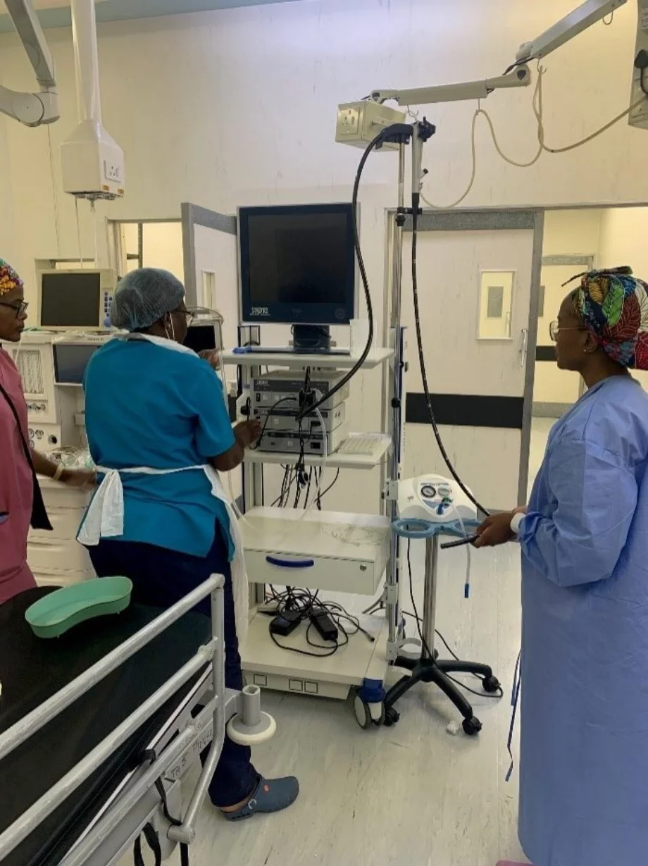 At Katutura Hospital, two to four surgeons perform endoscopy, namely upper GI examinations and colonoscopies. There are two to three nurses with endoscopy training, but here also sometimes OR nurses are involved. The nurses are highly motivated to receive additional training and upskilling (Fig. 6).